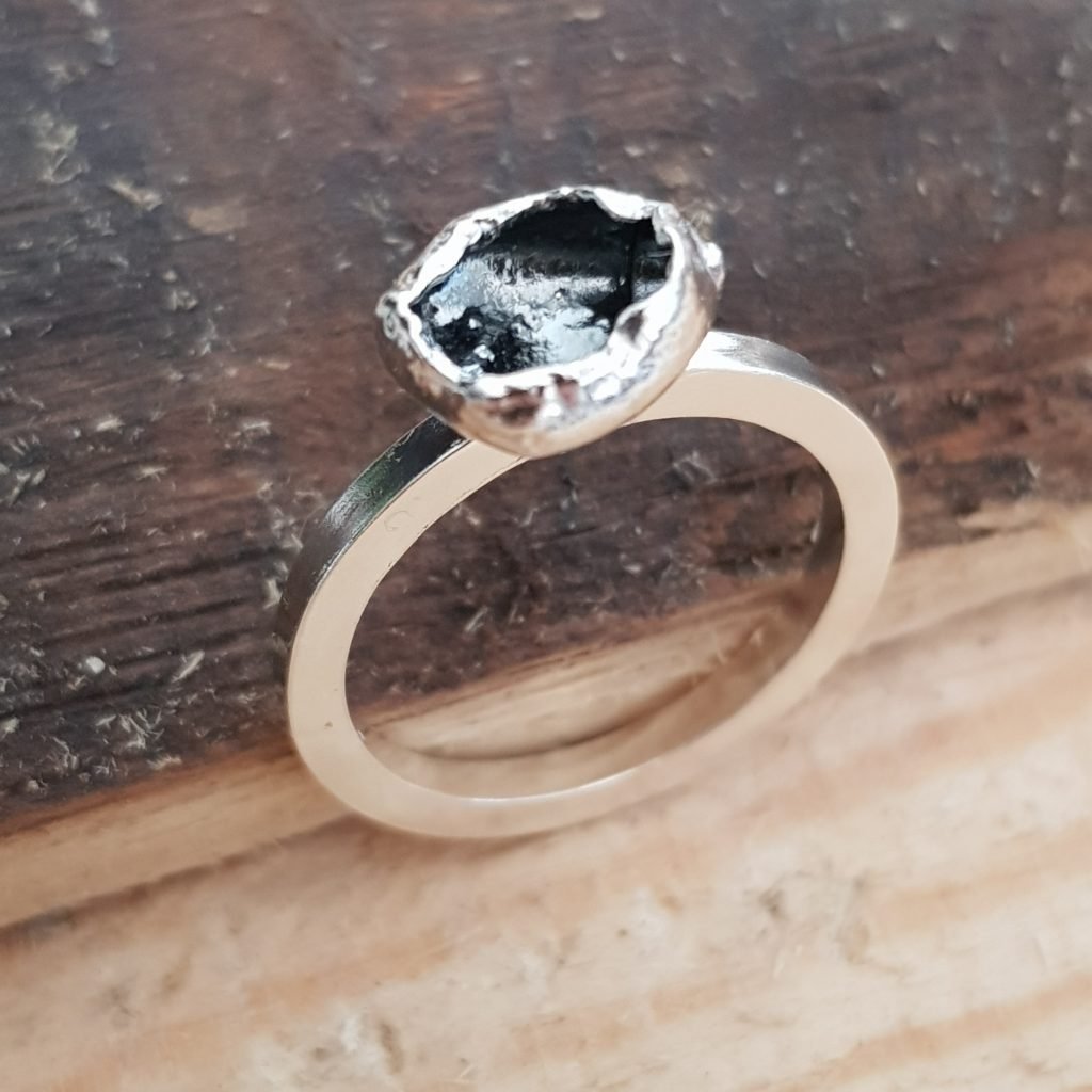 Pulsera rígida ovalada, de plata con charm en forma de mariposa.