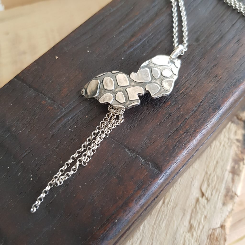 Pulsera abierta de plata, con adornos que sirven de cierre.