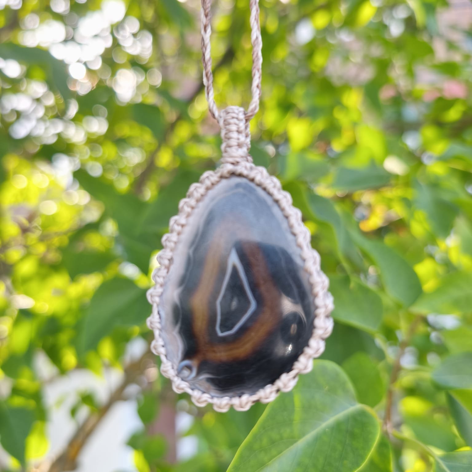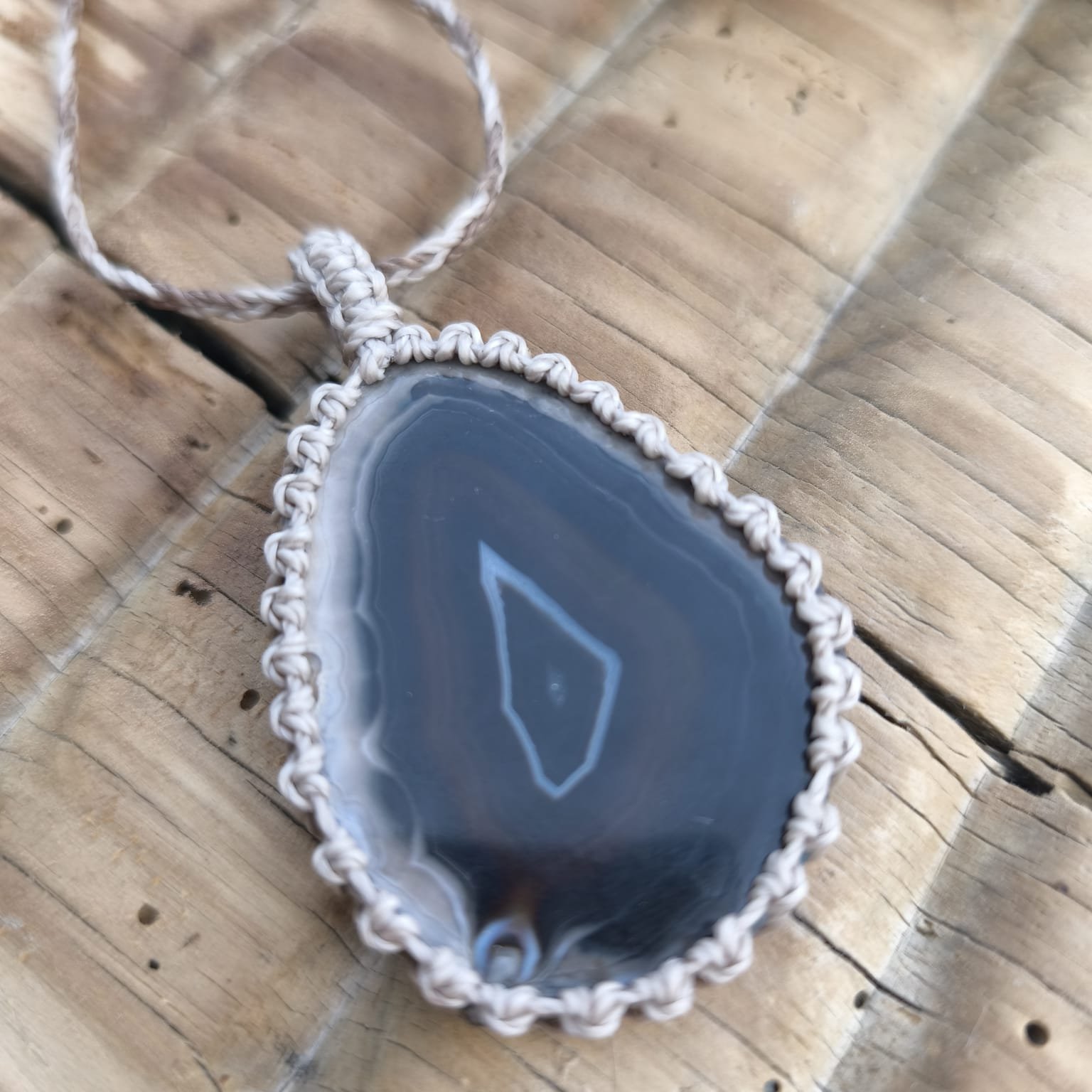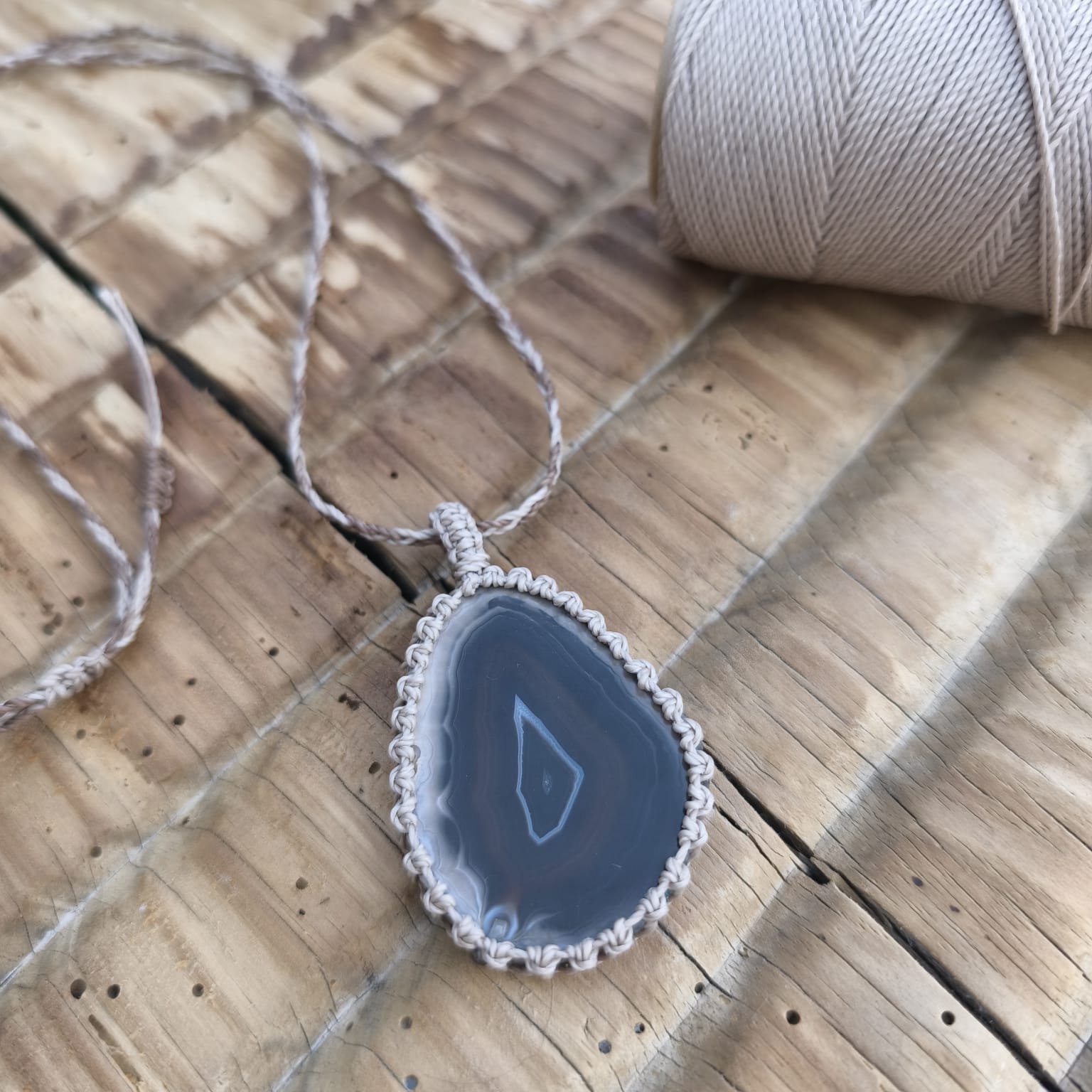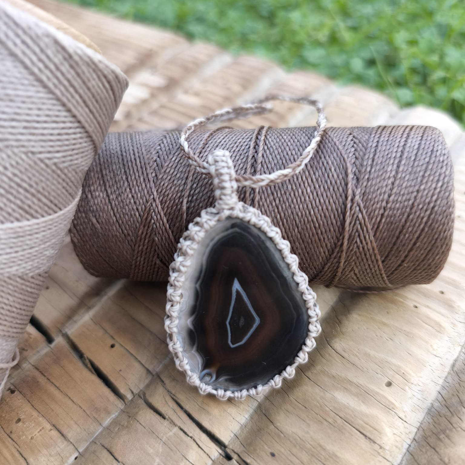 Descubre el poder de la Ágata, una piedra única que aporta equilibrio emocional, tranquilidad y protección. Este hermoso colgante está cuidadosamente engarzado en macramé de alta calidad, con tonos naturales que resaltan la belleza de la piedra.